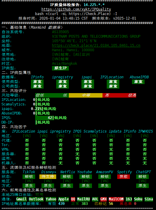 -------------IP质量检测--基于oneclickvirt/securityCheck使用--------------