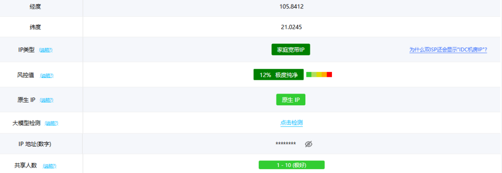 多次网站测试数据为双ISP的越南运营商的IP真实家宽