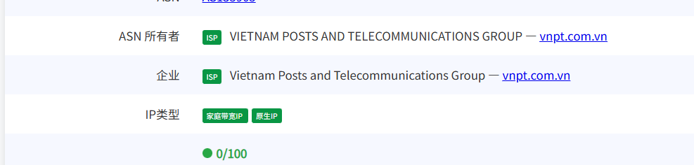 多次网站测试数据为双ISP的越南运营商的IP真实家宽